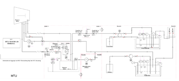 Für den Zweck der Fernwärmeversorgung wird das vom Motor kommende Öl mithilfe einer konstant durchlaufenden Ölförderpumpe durch den FluidIX Lub-6 in den Tank geleitet.