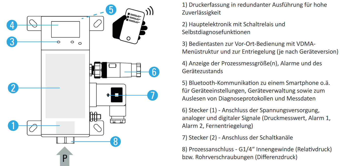 By using the ES series, you reduce time-consuming, labor-intensive commissioning and device testing for safety-relevant components. Configuration and functional testing of sensors and switching relays can be performed quickly and precisely via an Android app. This eliminates the need for a gradual increase in system pressure.
