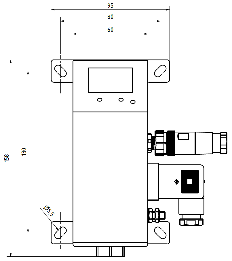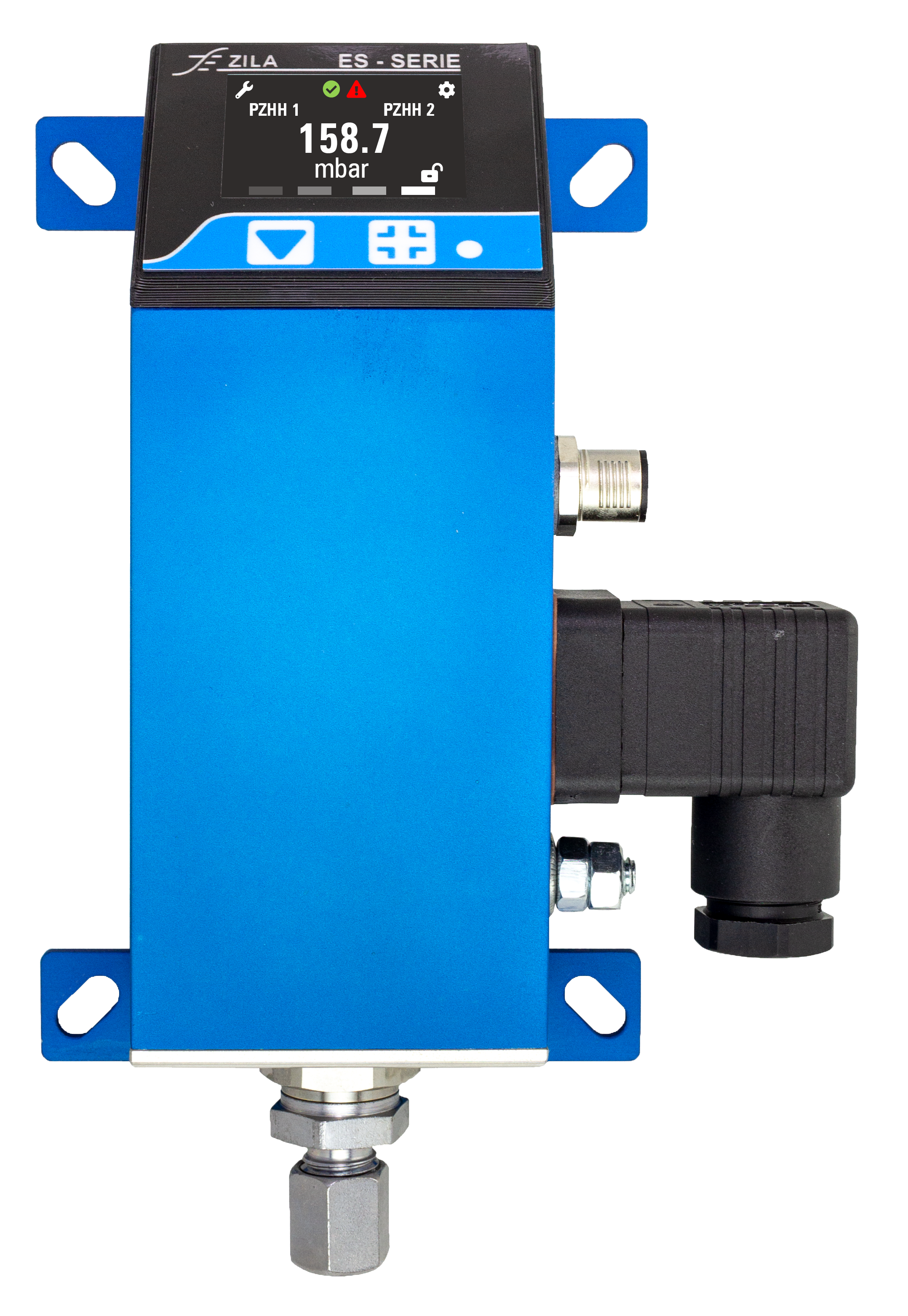 - Read pressure value, switching thresholds and other parameters directly on the display