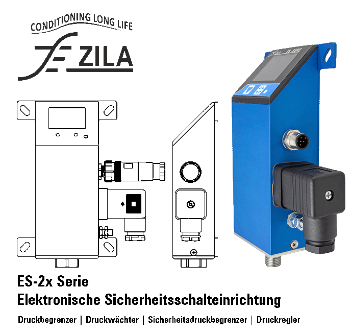 The devices of the ES-2x series are electronic safety switching devices for pressure monitoring with comprehensive self-diagnostic functions and fail-safe design. The devices are used as pressure regulators, for minimum or maximum pressure limitation on compressors in refrigeration and air conditioning systems, on heat pumps, steam boiler systems and on hydraulic systems.