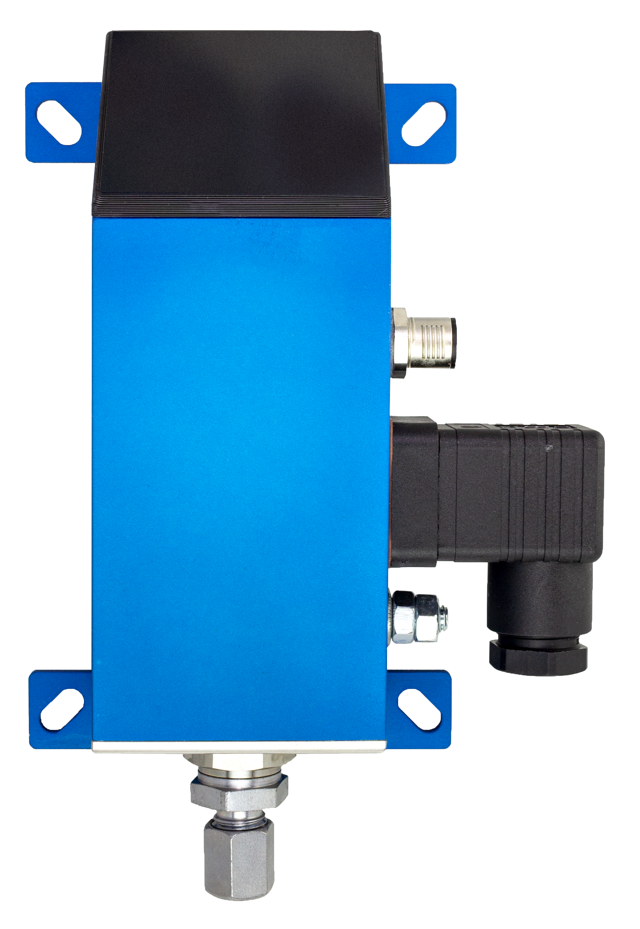 The ES-2... devices are constructed from a compact, anodized aluminum housing and, depending on the device variant, are designed as pressure regulators, pressure limiters, pressure monitors, or safety pressure limiters of a special design. Combinations, such as series-connected pressure limiters and safety pressure limiters according to EN 378, are also implemented in a single housing.