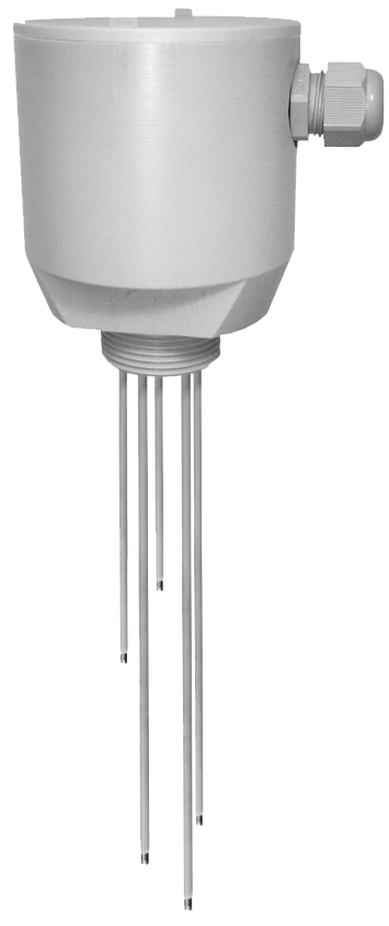 Das Elektrodenrelais (Platine) im Anschlusskopf der Mehrfachelektroden (EF-3...5fach) kann 4 unabhängige Eingangssignale in 4 Schaltsignale (Schließer) umsetzen. Mit 4 Messpunkten können Messaufgaben wie zum Beispiel Überfüllsicherung, Trockenlaufschutz und Zweipunktregelung von Pumpen realisiert werden.
