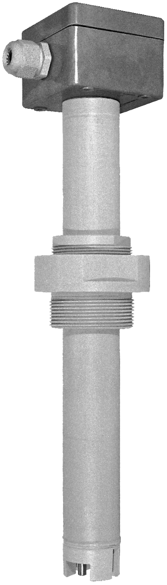 The ET-480a electronic unit installed in the junction box supplies a measuring voltage which causes an operating current to flow through the signal line via the resistor installed in the conductive electrode. If the conductive medium rises to the level of the electrode tips of the level sensor, a circuit is closed. This leads to a switching of the potential-free output contacts on the electronic part.