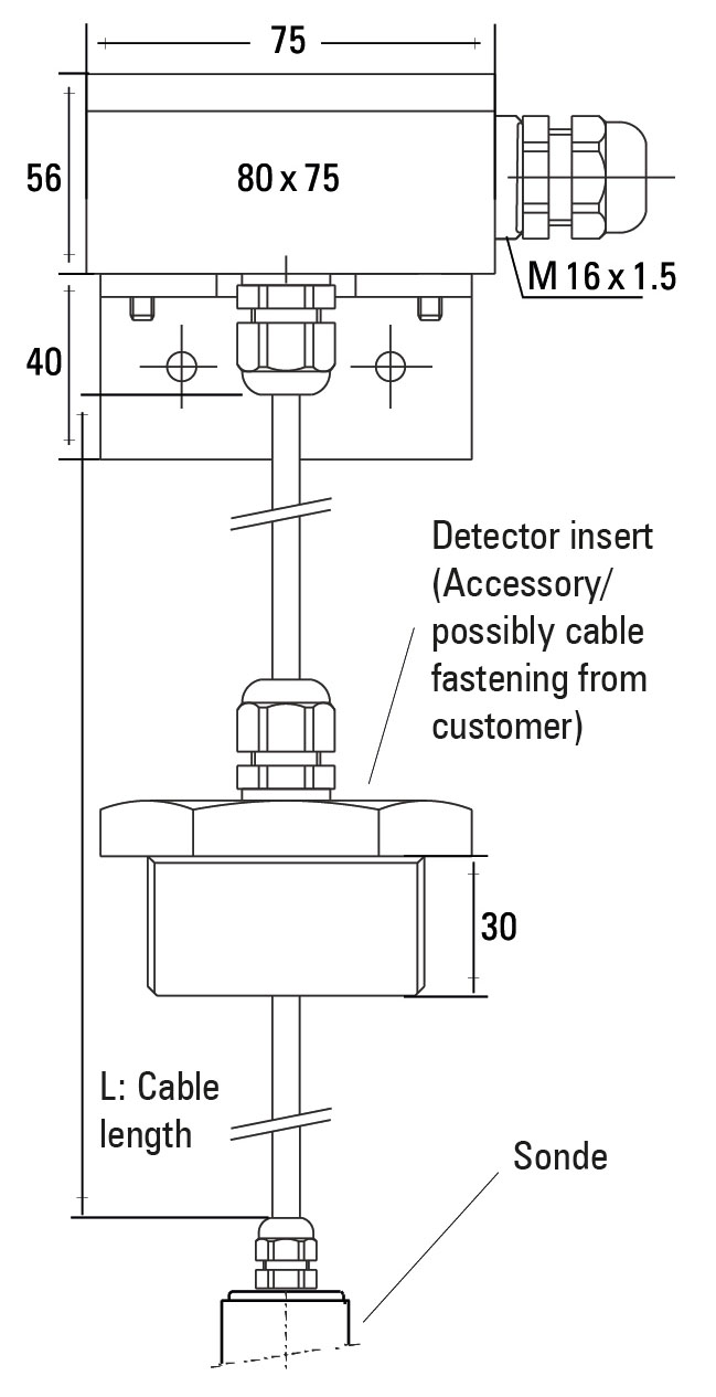 Das Elektronikteil wird in den Anschlusskopf der Elektrode ELH eingebaut und hat eine Versorgungsspannung von 24 V DC. Das Elektronikteil besitzt einen Schließer-Ausgang in Ruhestromausführung (Sonde nicht benetzt: Kontakt ist geschlossen).