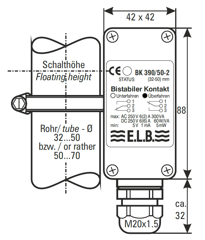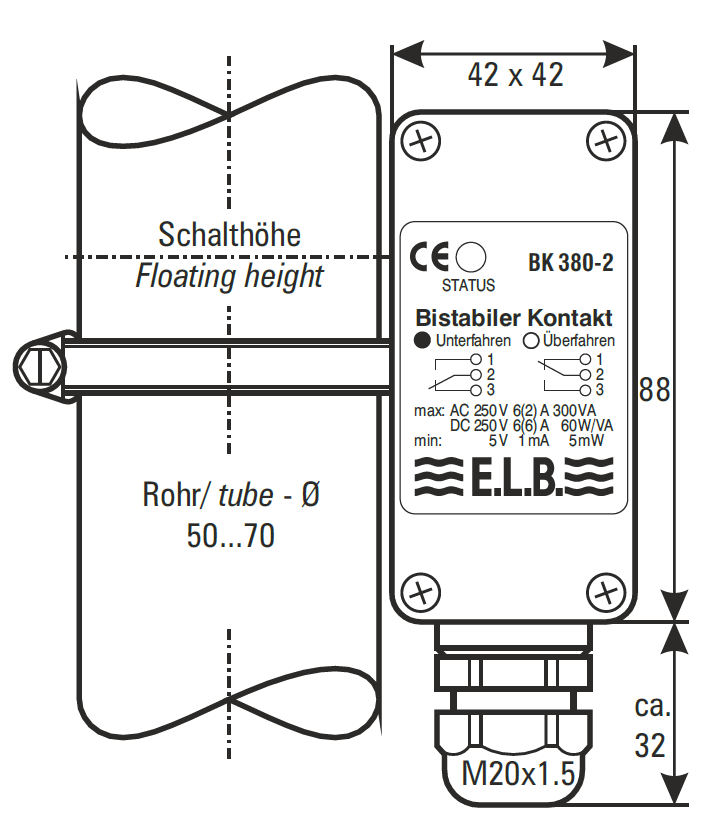 Der BK-380 ist für den Niveaustandsanzeiger Typ MKL geeignet; dieser besitzt ein anderes Magnetsystem.